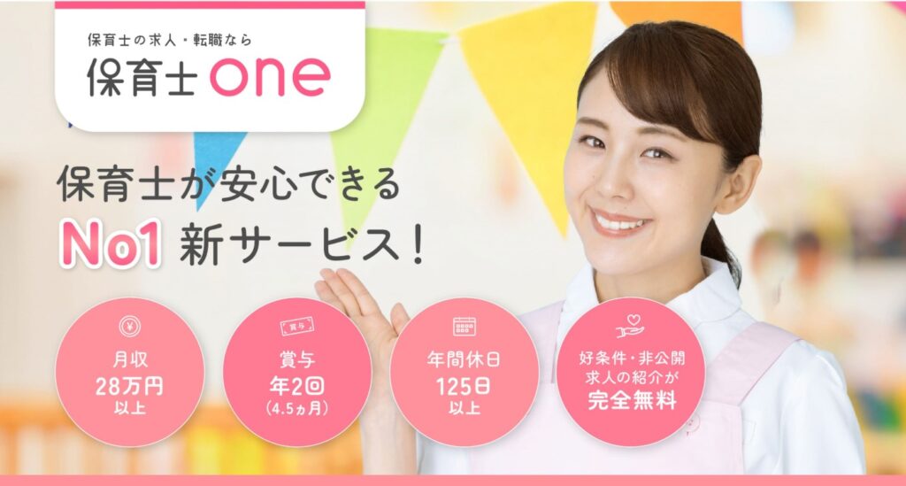 保育士ONEは、保育士・幼稚園教諭など、保育に特化した完全無料の転職・就職支援サービスです。