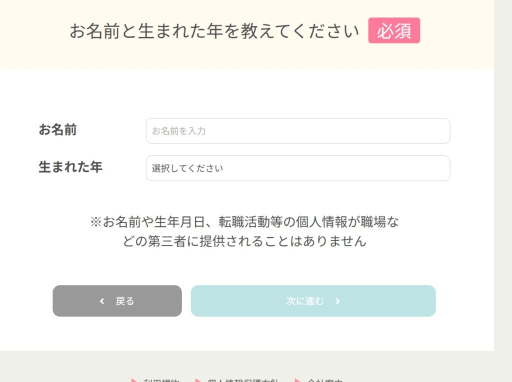 名前と生年月日を入力