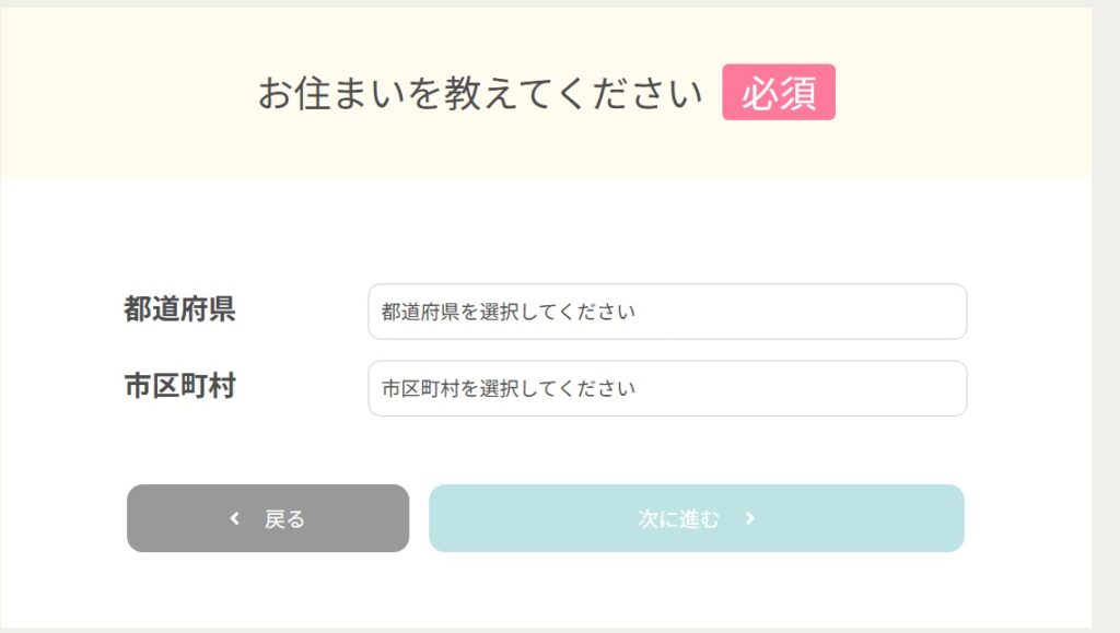 住んでいる都道府県と市町村を入力