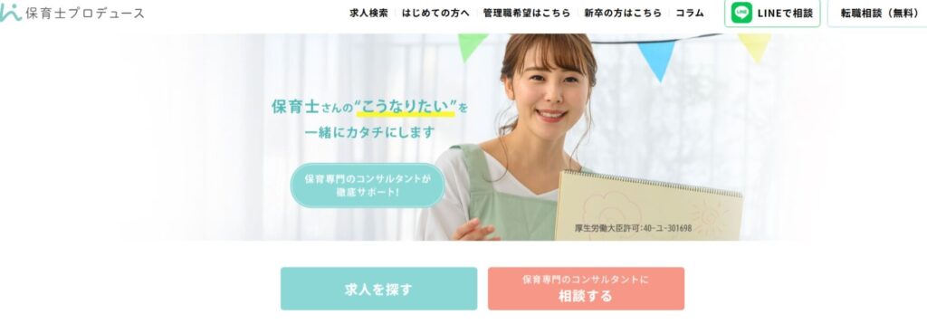 「保育士プロデュース」は、保育士さん向けに特化した無料の転職支援サービスです。